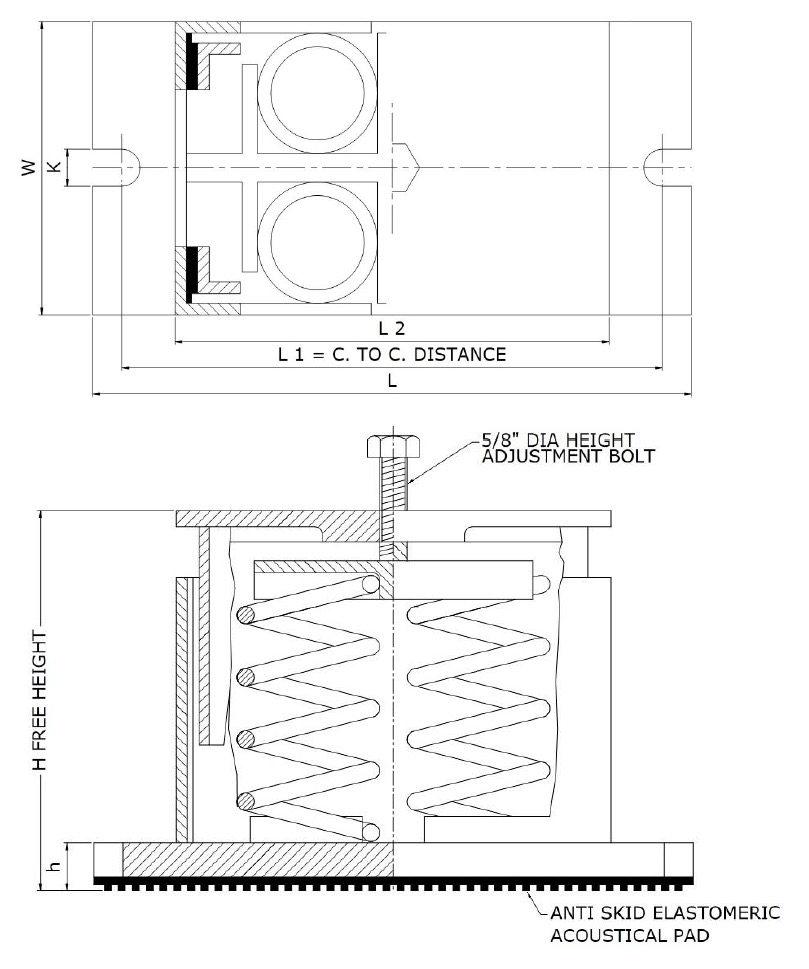 Type “Y-4” series mounts with one inch deflection solves troublesome vibration problems. These mounts are preferred over most rubber mounts due to the high static deflection of the springs. “Y-4” series spring mounts are designed for noise and vibration control applications in critical areas on concrete or wooden floors.