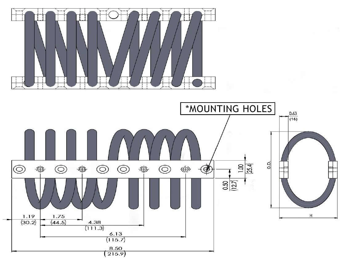 WIRE DIA IN (MM) H IN (MM) OD IN (MM) SPRING RATE LB/IN (KGF/MM) MAX DEFL IN SPRING RATE LB/IN (KGF/MM) MAX DEFL IN (MM) SPRING RATE LB/IN (KGF/MM) MAX DEFL IN (MM)